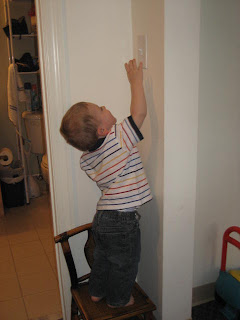 I found this cute little chair at Ross for like 10 buck and it is a hit! Emery drags it everywhere around the house. But I just hope it lasts (it's not the highest quality in the world!). But we'll see how glad I am about it when he figures out he can use it to climb up on everywhere, not just to turn on and off the lights!